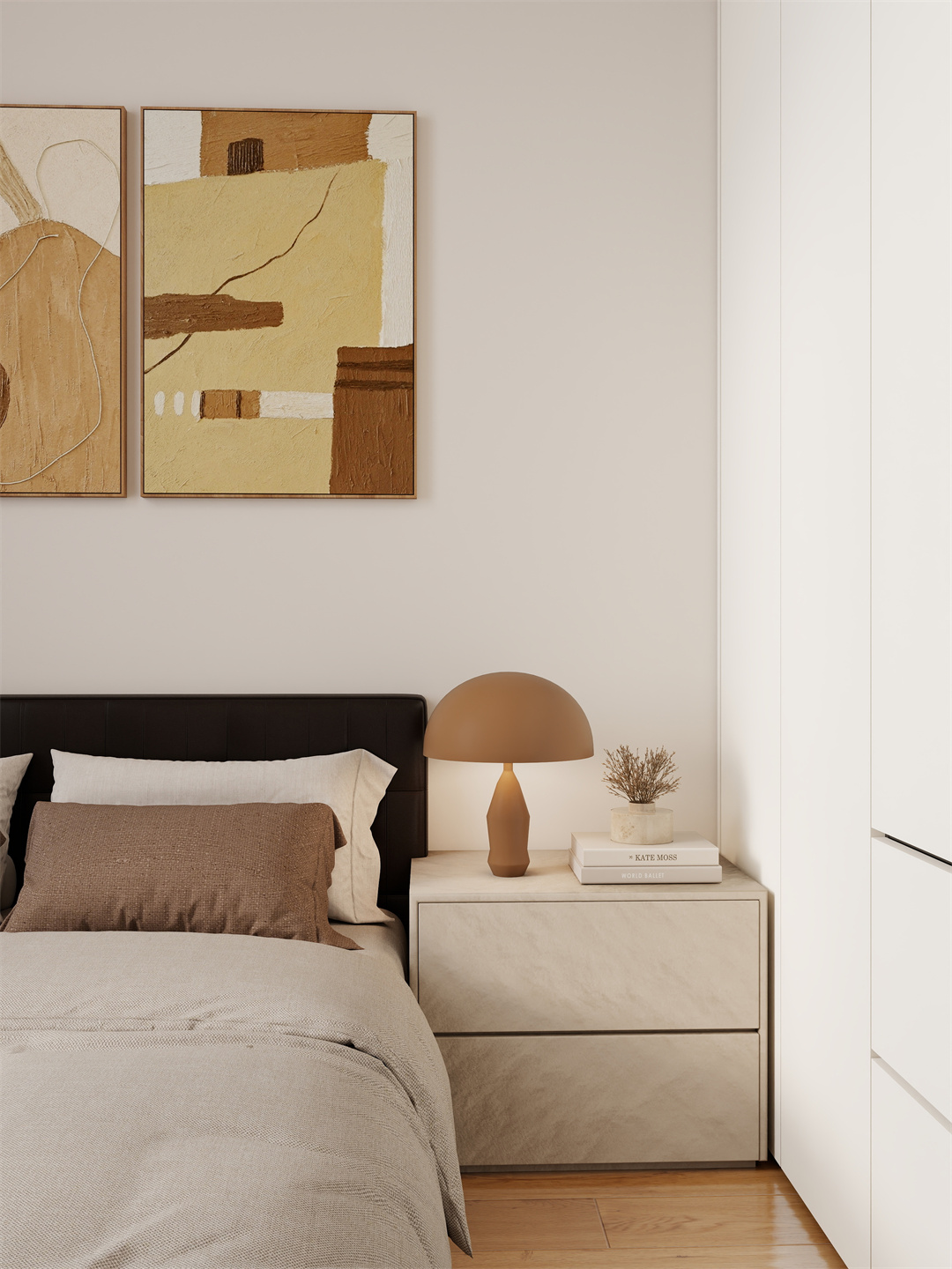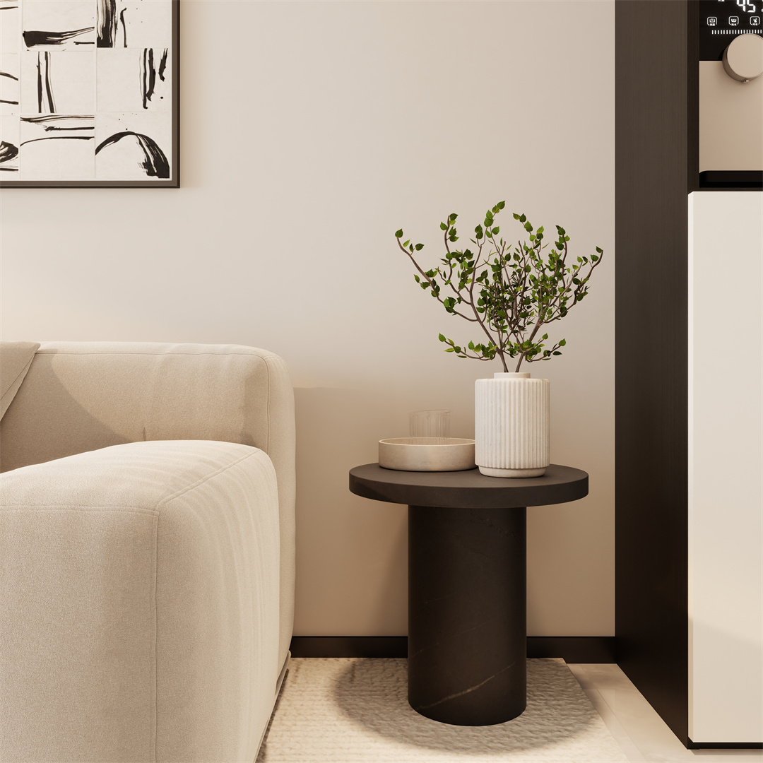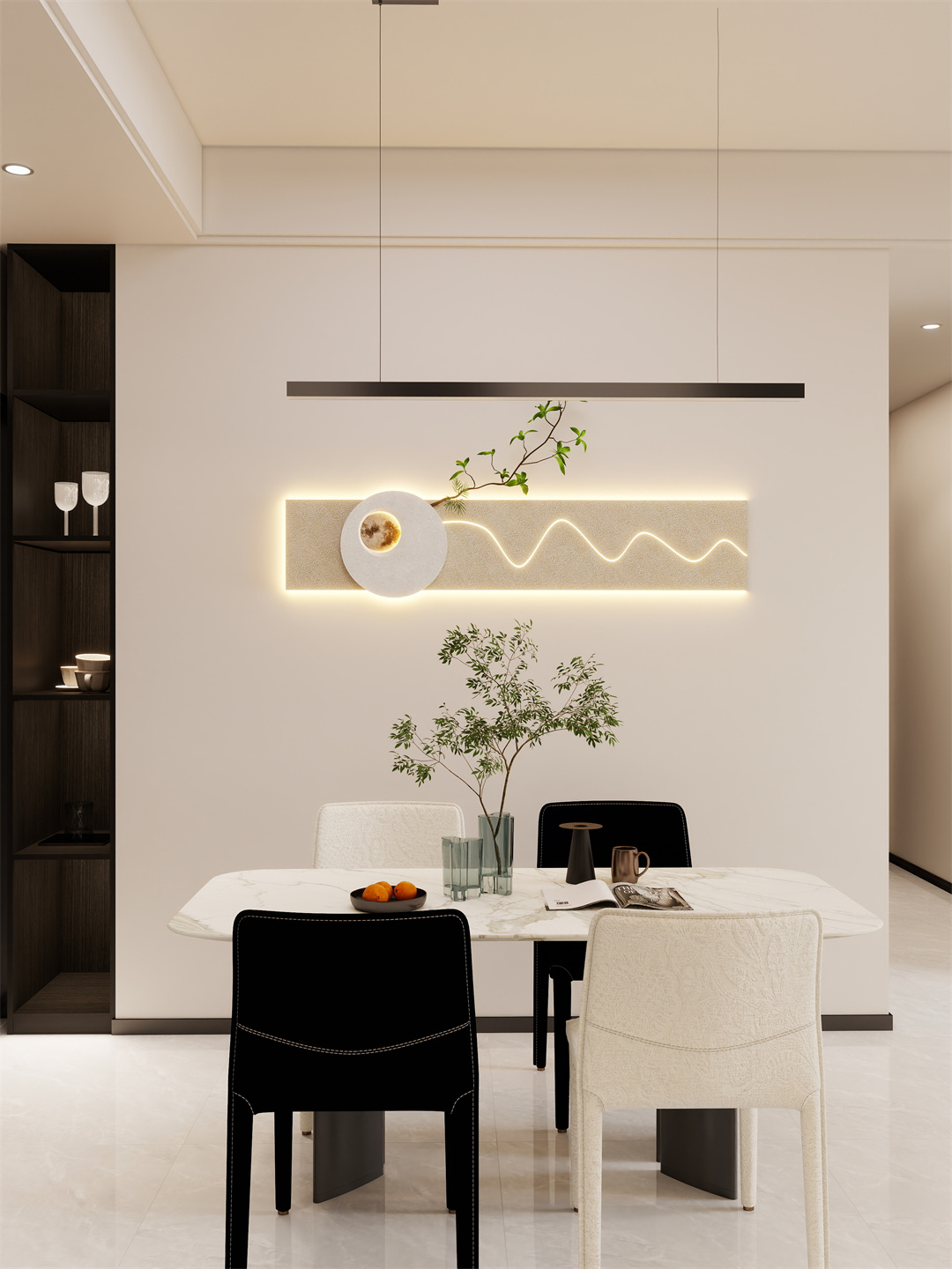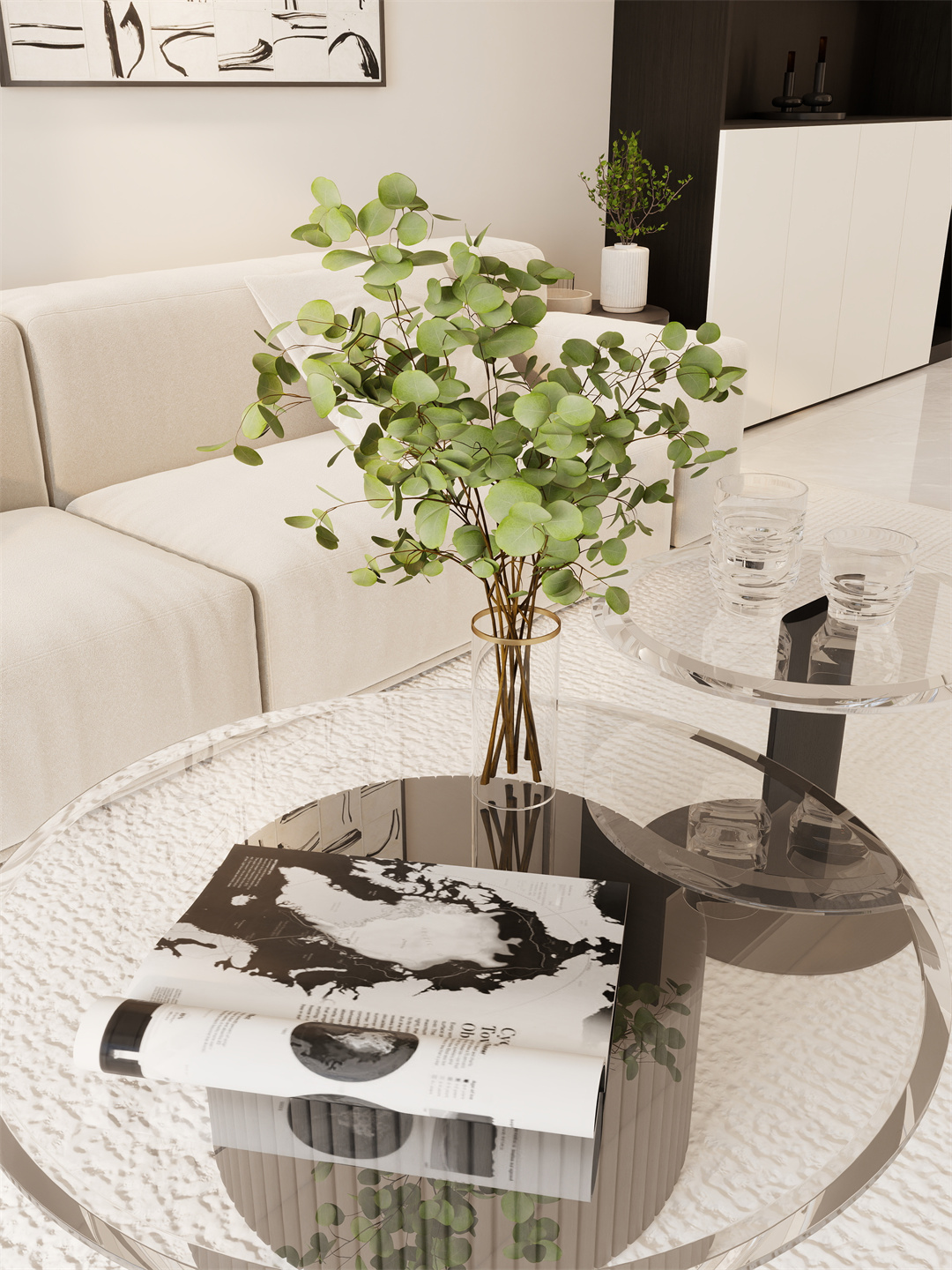 • 色彩上以黑白為主調,簡潔大氣。白色柜體延伸視覺,提供充足收納空間,黑色開放式格架形成對比,既豐富層次,又方便展示與拿取物品